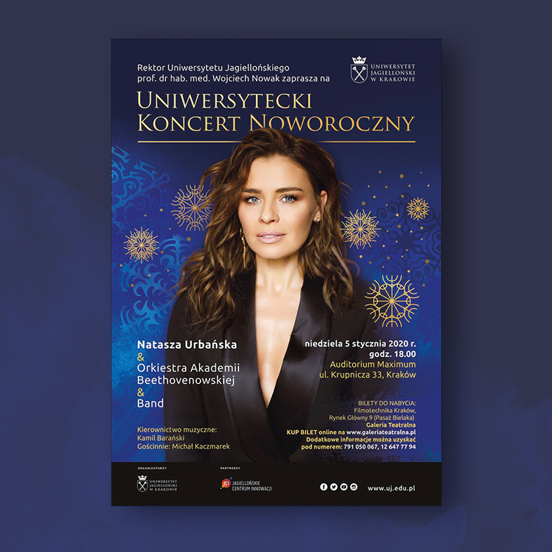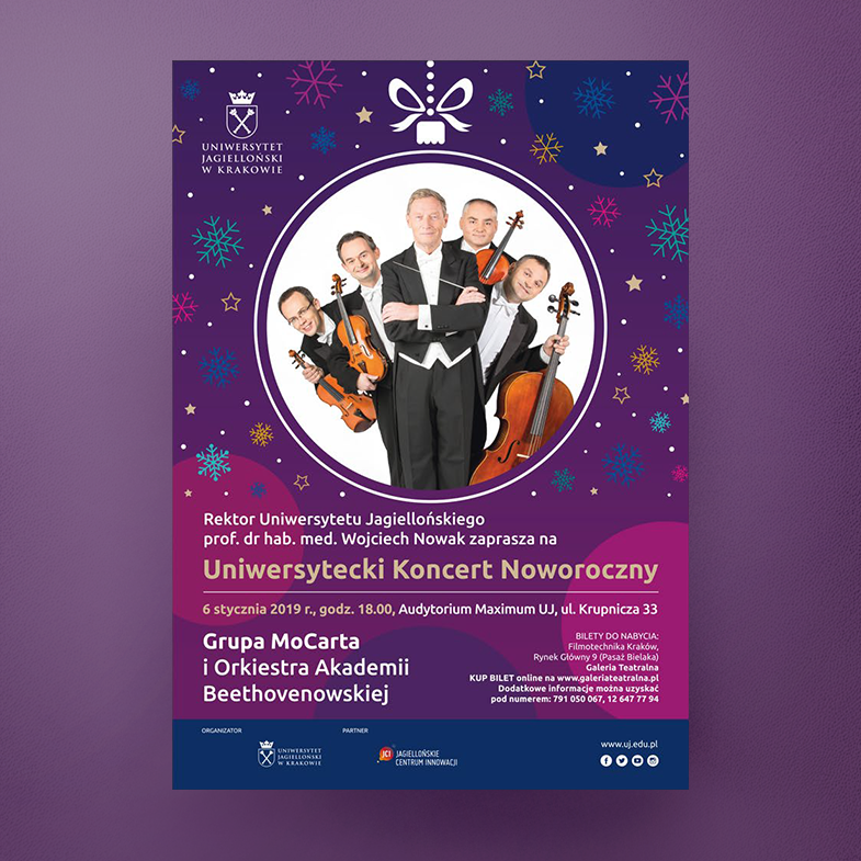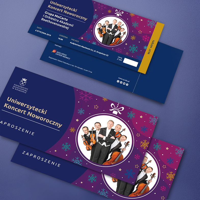 Kreacja graficzna materiałów promocyjnych. Opracowanie spójnej identyfikacji wizualnej wydarzenia, w tym projekt plakatu, zaproszenia z wkładką, biletu wstępu i baneru na stronę internetową.