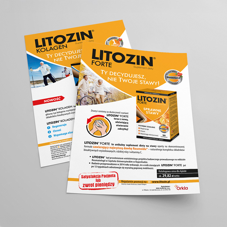 Pracując dla agencji reklamowej przygotowałyśmy projekty opakowań dla marki Möller’s oraz opracowałyśmy layout plakatu i ulotki promocyjnej dla marki Litozin.